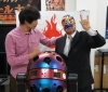 プラネタリウムの実演が終わり灯りが付けられると、先程までいなかったマスクマンが立っていた。大平社長が「メガスターマン1号」と紹介。今回の大会では第4試合の大平技研プレゼンツのロイヤルランブルに出場する。
